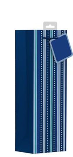 "Male Vertical Stripe" flaskepose med metallfolierte detaljer, kraftig bånd og kort.