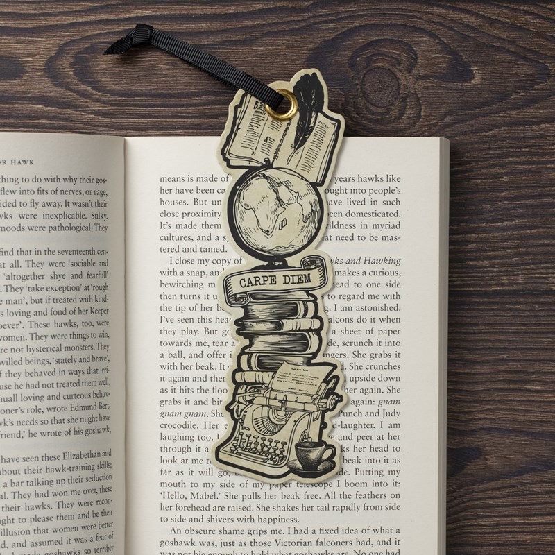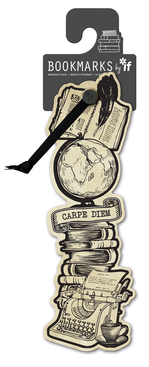 Academia Bookmarks - "Carpe Diem" bokmerke i kraftig kvalitetskartong med tekstilbånd. Bokmerket er trykket på FSC MIX Paper C134008.