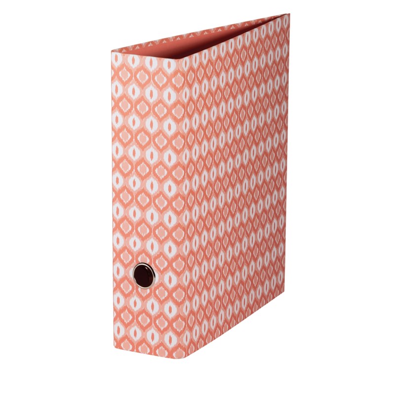 Kraftig brevordner med standard lukkemekanisme og gripehull i ryggen i design "Coral Nomad". Produktet er produsert i kartong av FSC godkjent papir FSC C104359 av Røssler Papier GmbH & Co. KG, Tyskland.
