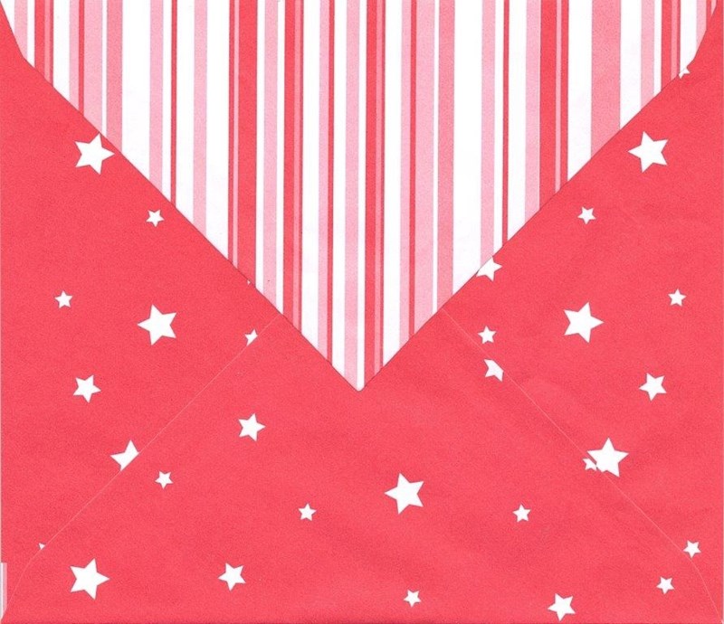 Engelsk innsidetekst og dekorerte konvolutter.