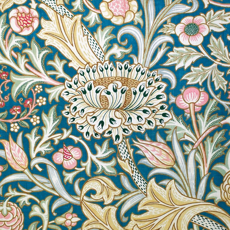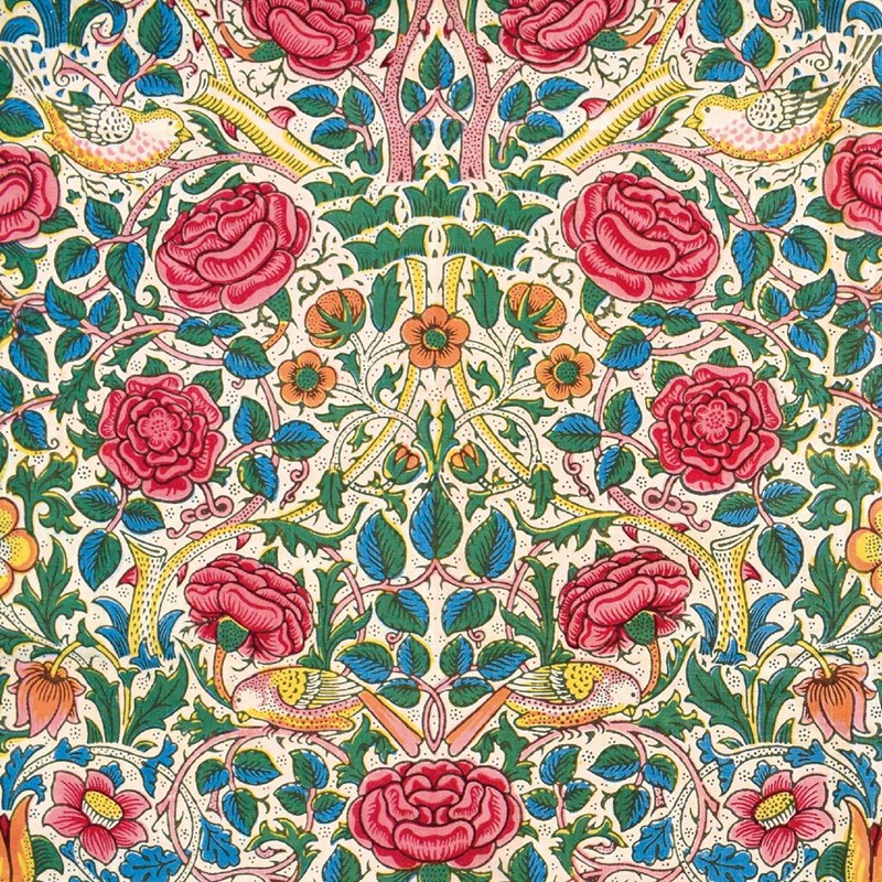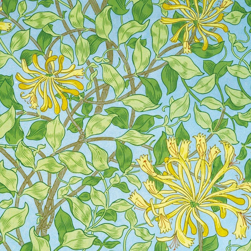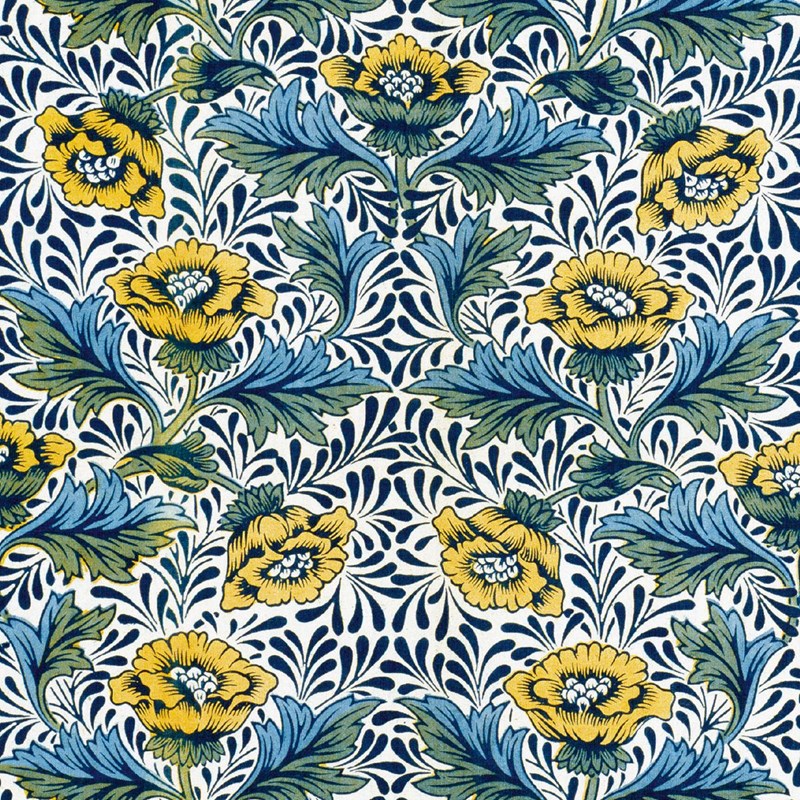 Kortpakke fra Museums & Galleries, England med tema "Arts & Crafts Designers" fra Victoria and Albert Museum. Motivene er "Trent furnishing fabric" av J.H. Dearle (1859-1932). "Honeysuckle wallpaper" av May Morris (1862-1938). "Peony furnishing fabric" av Kate Faulkner og "Rose furnishing fabric" av William Morris (1834-96)