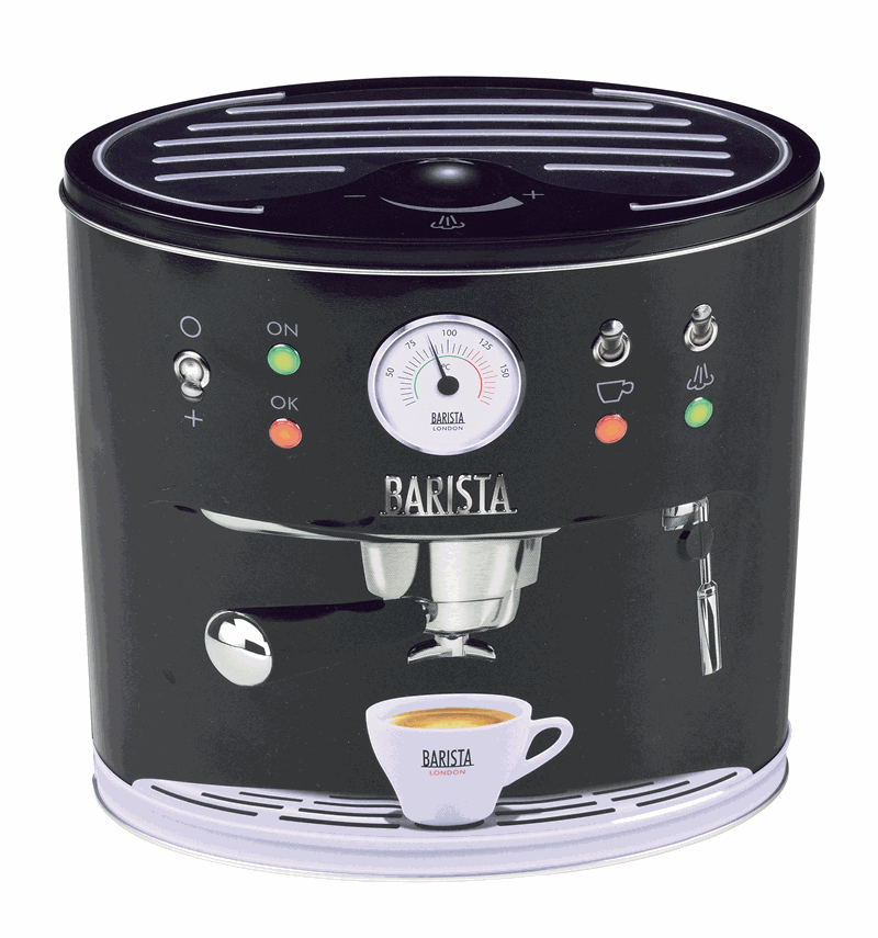 Tøff "Barista" kaffeboks i metall, fin til kaffebønner eller kapsler.