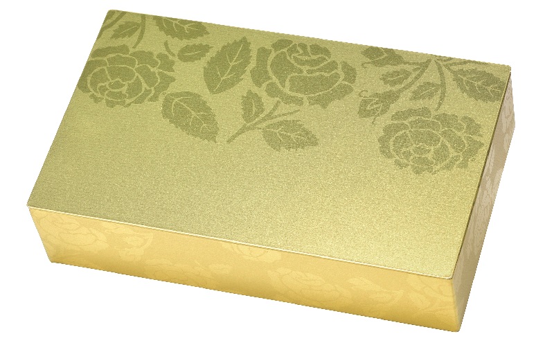 "Sissy" metalleske med hengslet lokk i mattslipt gullfarge med diskret blomstermotiv.