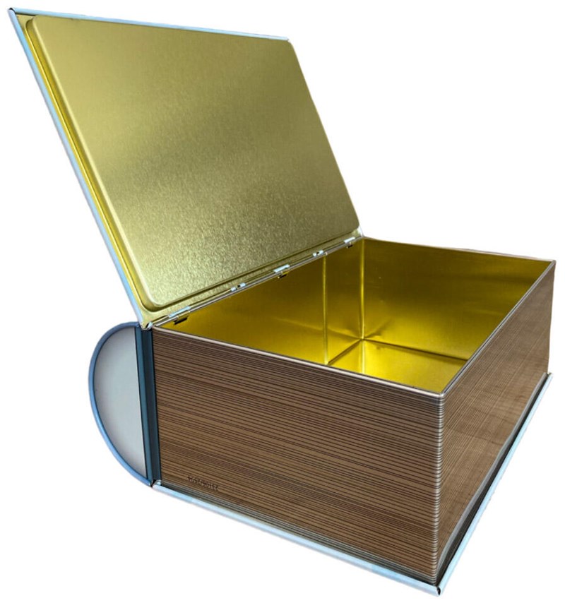 "Afternoon Tea Biscuit Book" Metallboks i bokformat med hengslet lokk og pregede detaljer.