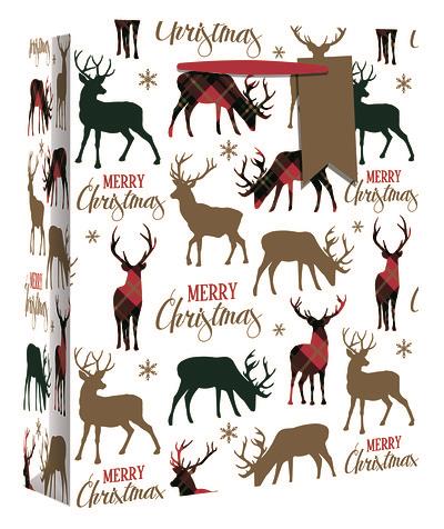 Gavepose large med gullfolierte detaljer, silkebånd og pakkelapp.