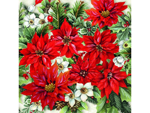 3 lags "Poinsettia All Over" kaffe juleservietter.