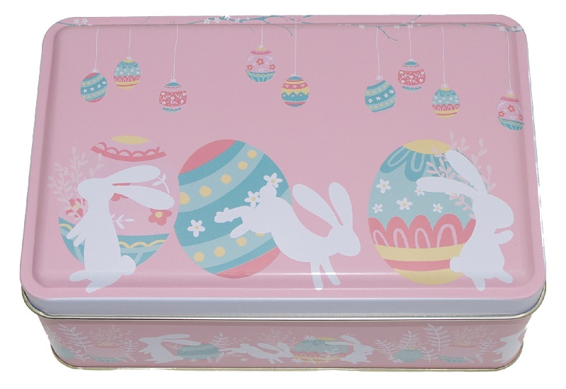"Pasqua" Rektangulær metalleske med hengslet lokk og påskedekor.