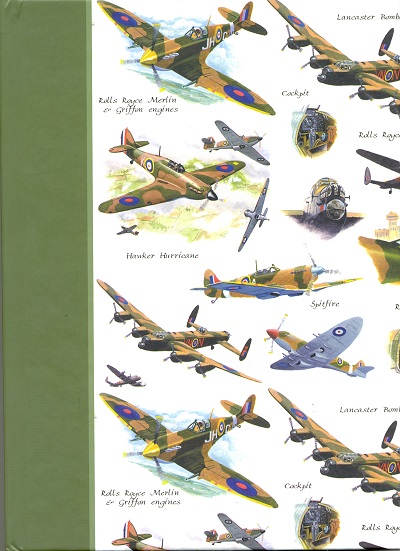 Skrivebok i A5 med motiv av gamle krigsfly på omslaget, Hawker Hurricane, Lancaster Bomber og Spitfire. .