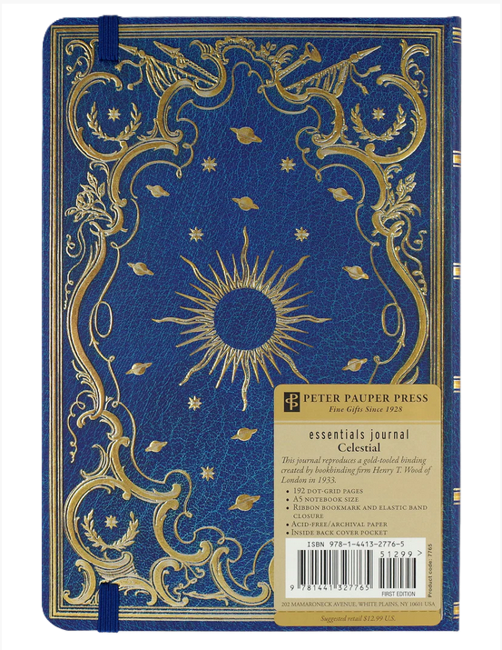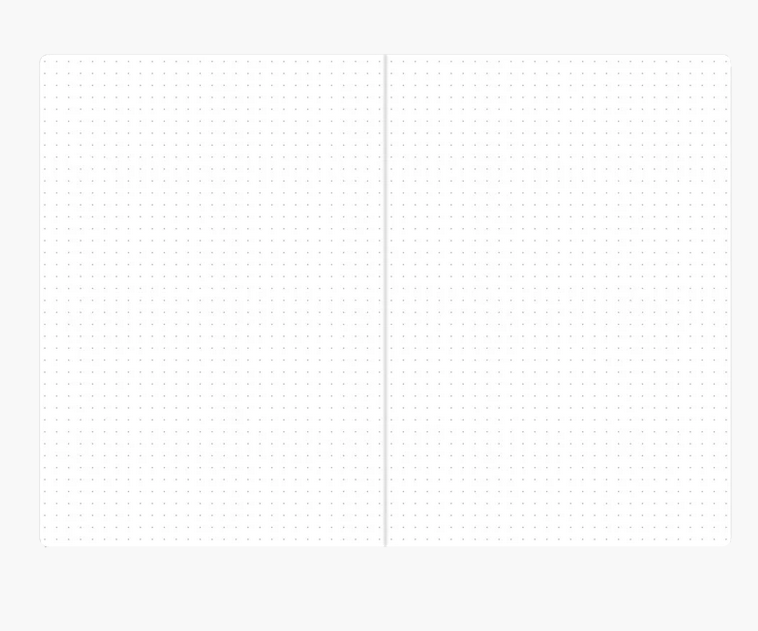 Innbundet "doted" skrivebok fra Peter Pauper Press, USA. Boken har bokmerke-bånd og innvendig lomme og lukkes med strikk. Prikkene i boken gjør den ideell til både skriving og tegning.