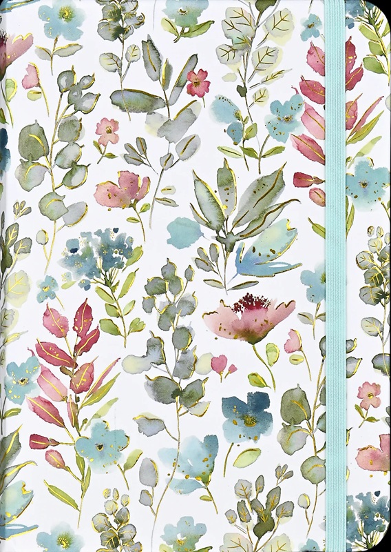 "Floral Watercolor" Innbundet linjert journal (skrivebok), 160 sider med 120 gram syrefritt papir, fra Peter Pauper Press,USA med preget innbinding og gullfolierte detaljer, gullsnitt, strikk-lukking og innvendig lomme.